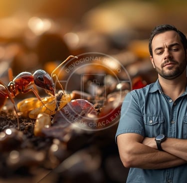 Senhor, mostre-me o que está dormindo em mim que precisa acordar. Não quero agir por medo nem por culpa, quero agir porque compreendi o valor do que o Senhor colocou em minhas mãos. Me dê a sabedoria da formiga: a capacidade de ver além do presente e a coragem de agir mesmo quando não tenho vontade. Que cada pequeno passo de hoje seja semente do que o Senhor quer colher amanhã. Amém.